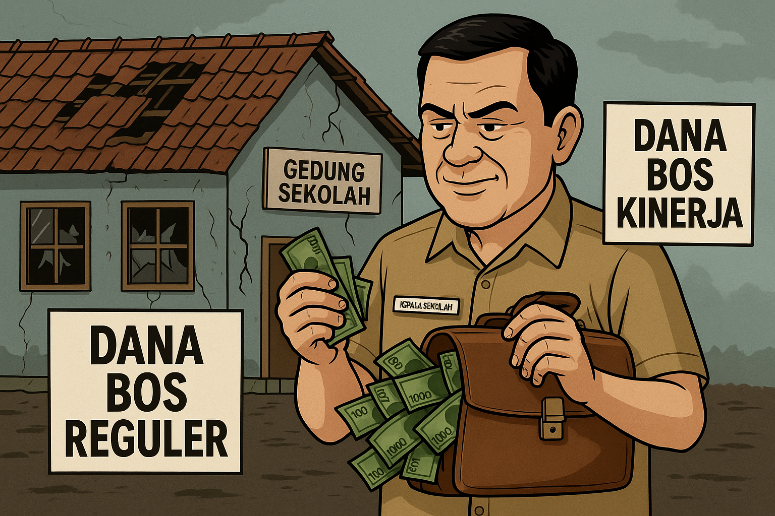 Ironisnya, dana BOS yang seharusnya digunakan untuk perawatan gedung dan sarana prasarana sekolah sebesar 5% hingga 8% justru tak tampak hasilnya. Pantauan media di lapangan menemukan kondisi gedung sekolah yang sangat memprihatinkan: atap ruang kelas jebol, jendela kaca pecah, tembok tak terawat, dan cat yang sudah memudar.